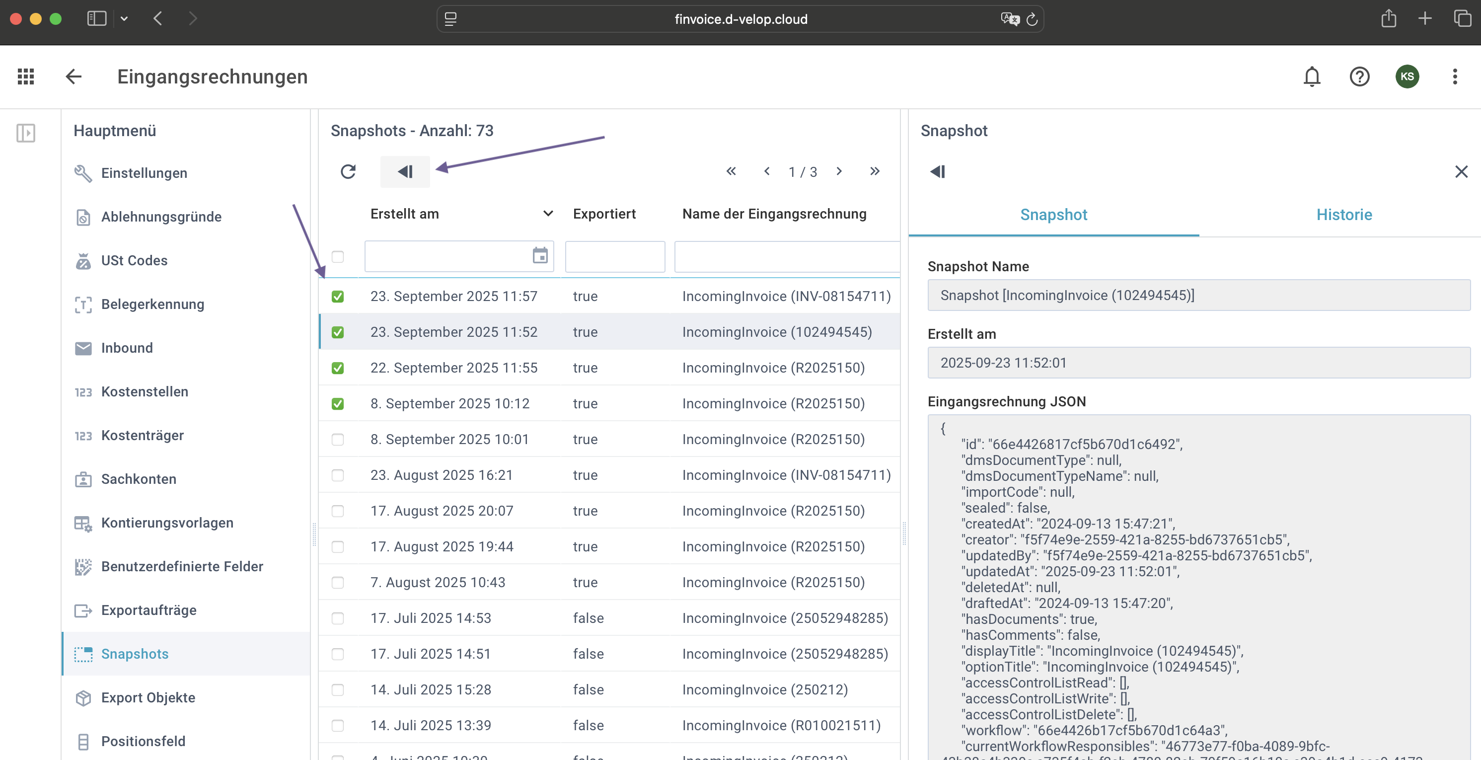 1. Navigieren Sie zu Konfiguration -> alphaflow Eingangsrechnungen -> Snapshots
